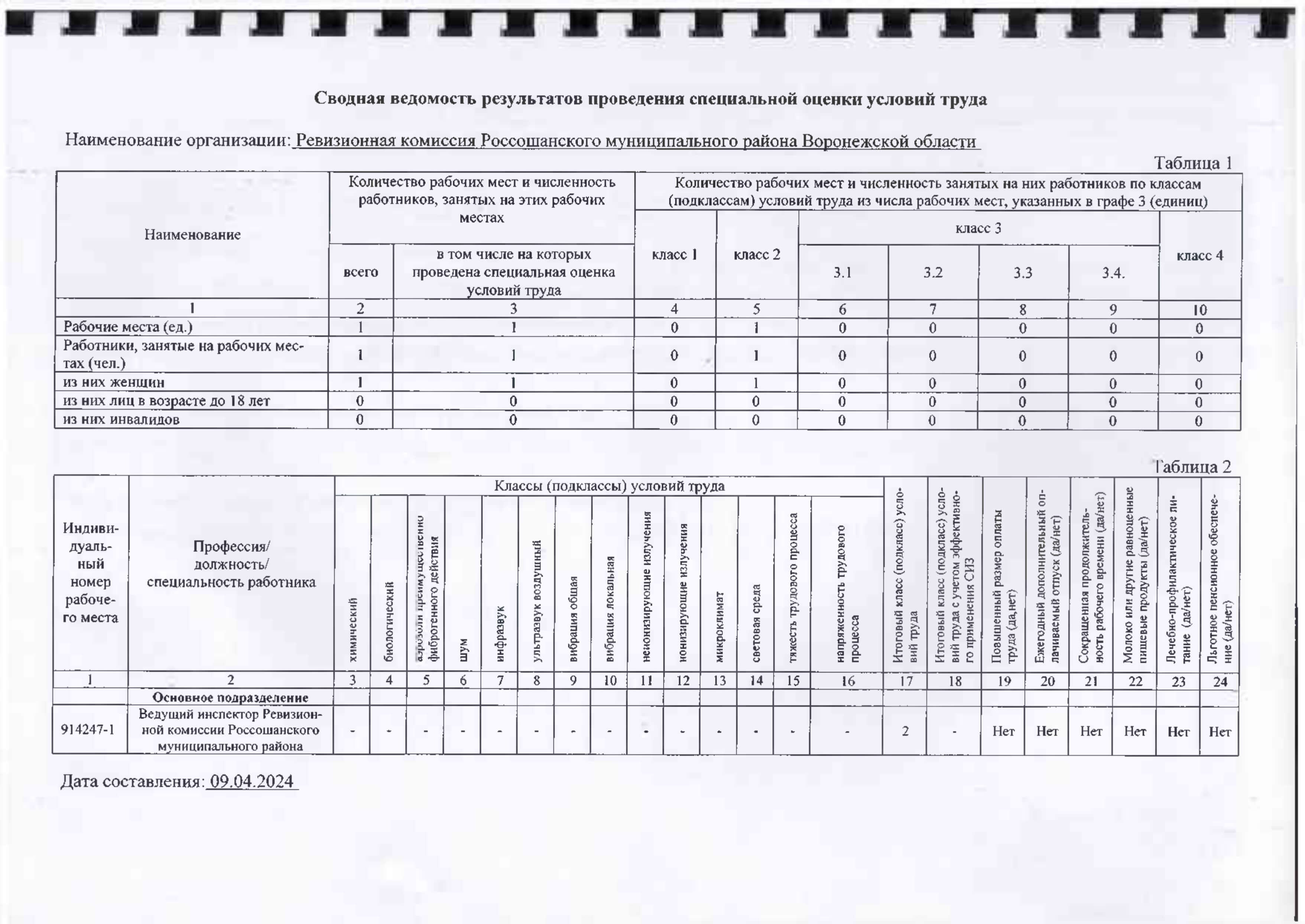 Главная | Ревизионная комисия Россошанского муниципального района | Специальная оценка условий труда Ревизионной комиссии | Сводная ведомость результатов проведения специальной оценки условий труда Ревизионной комиссии